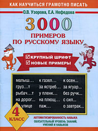 Пособие содержит 3000 новых примеров на повторение и закрепление основных правил орфографии и пунктуации. Оно охватывает всю программу 4 класса по русскому языку. Особенностью этого издания является крупный шрифт. Материал построен таким образом, что ...