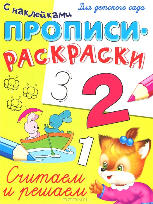 Прописи и раскраски с наклейками для детского сада. Считаем и решаем.