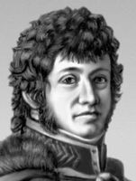 Мюрат (Murat) Иоахим (25.3.1767, Лабастид-Фортюньер, ныне Лабастид-Мюра, Ло, - 13.10.1815, Пиццо, Калабрия), французский военный деятель, маршал Франции (1804), герцог Бергский и Клевский (1806), король Неаполитанский (с 1808). Сын трактирщика. С 1787 служил в кавалерии, в 1792 произведён в офицеры. Отличился при подавлении роялистского мятежа 4 октября 1795 и стал адъютантом Наполеона Бонапарта. За отличия в Итальянском походе 1796 произведён в бригадные, а за Египетскую экспедицию - в дивизионные генералы (1799). Командуя гренадерами, содействовал Бонапарту в захвате власти 18 брюмера (9 ноября) 1799. В 1800 женился на сестре Наполеона Каролине. Участвовал во всех наполеоновских войнах, проявив выдающиеся способности в командовании кавалерийскими соединениями и исключительную храбрость. В 1808 жестоко подавил восстание в Мадриде. Став королём Неаполя, пытался вести самостоятельную политику, чем вызвал с 1810 ухудшение отношений с Наполеоном. Во время похода в Россию 1812 командовал 28-тыс. кавалерийским корпусом, потерпел поражение под Тарутином. После отъезда Наполеона во Францию командовал отступавшей наполеоновской армией. В 1813 участвовал в сражениях при Дрездене и Лейпциге, затем уехал в Неаполь и в январе 1814, стремясь сохранить престол, вступил в тайный союз с Австрией и Великобританией, изменив Наполеону. Однако на Венском конгрессе 1814-15 притязания М. не получили поддержки, и он во время "Ста дней" выступил на стороне Наполеона, был разбит в Италии и бежал на Корсику; позже с небольшим отрядом высадился в Калабрии, намереваясь вернуть престол, но был схвачен, осуждён австрийским военным судом и расстрелян.