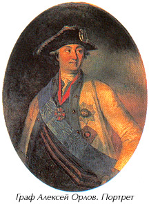 Орлов Алексей Григорьевич (1737 - 1808 гг.) - военный деятель, граф, виднейший участник переворота 1762 г., возведшего на престол Екатерину II. Во время первой русско - турецкой войны (1768 - 1774 гг.) командовал русской эскадрой в ходе Чесменского сражения (1770 г.). За победу в этом сражении и уничтожение турецкого флота получил титул графа Чесменского. После руководил доставкой в Петербург из Рима авантюристки, выдававшей себя за дочь Елизаветы Петровны ("княжна Тараканова"). Поняв, что расположение к ним императрицы закончилось, подал в отставку и поселился в Москве. Прославился как селекционер: вывел породу знаменитых орловских рысаков, орловских бойцовых гусей, орловских петухов).