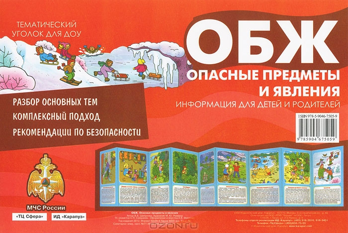 Предлагаем вашему вниманию тематический уголок-ширмочку " ОБЖ. Опасные предметы и явления", который можно использовать как в детском саду, так и дома. Разглядывая картинки и читая тексты, ребята как себя вести в потенциально опасных ситуациях. Размер ...