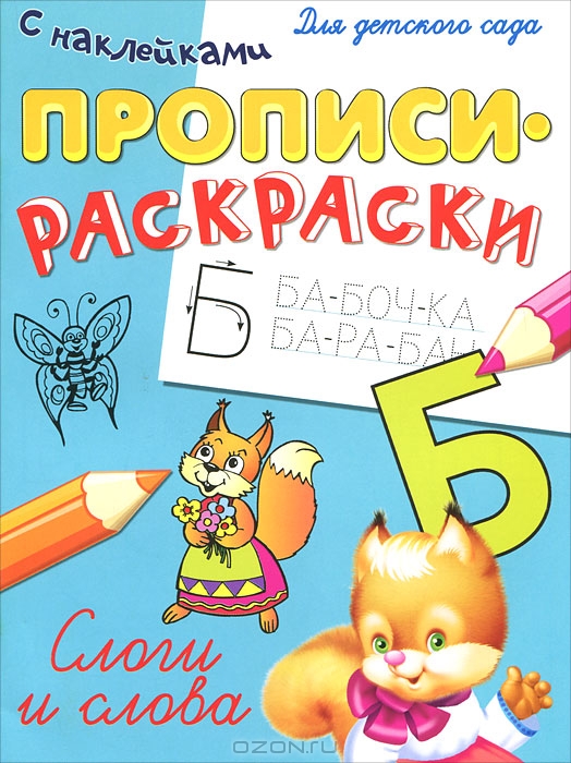 Эта раскраска поможет ребенку научиться составлять из слогов слова и писать их печатными буквами. Замечательные картинки, которые ребенок сможет раскрасить, и наклейки сделают занятие еще интересней!