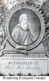 Всеволод Юрьевич Большое Гнездо (1154 - 1212 гг.) - сын Юрия Долгорукого, внук Владимира Мономаха, дед Александра Невского, великий князь владимирский с 1176 г. свое прозвище получил за многочисленное семейство (восемь сыновей, четыре дочери). Разгромив князей, претендовавших на стольный г. Владимир, и ростовских князей, противившихся усилению его власти, Всеволод Юрьевич конфисковал их земли и имущество. Активно боролся за усиление своей власти над русскими землями. Во время его правления начался расцвет культуры Владимирского княжества.